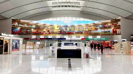 460㎡的巨幕,熙熙攘攘的繁华,金色与梦想的绽放,走进济南西站,在460㎡超级LED数字曲面屏上,山东黄金带来了一场空间与视觉的震撼,文化与情感的交流。